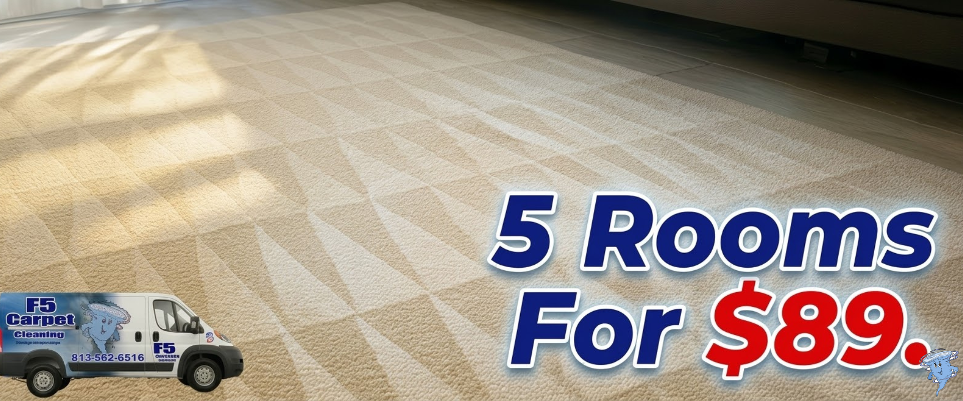 F5 Carpet Cleaning - 5 Rooms For $89 promotional banner